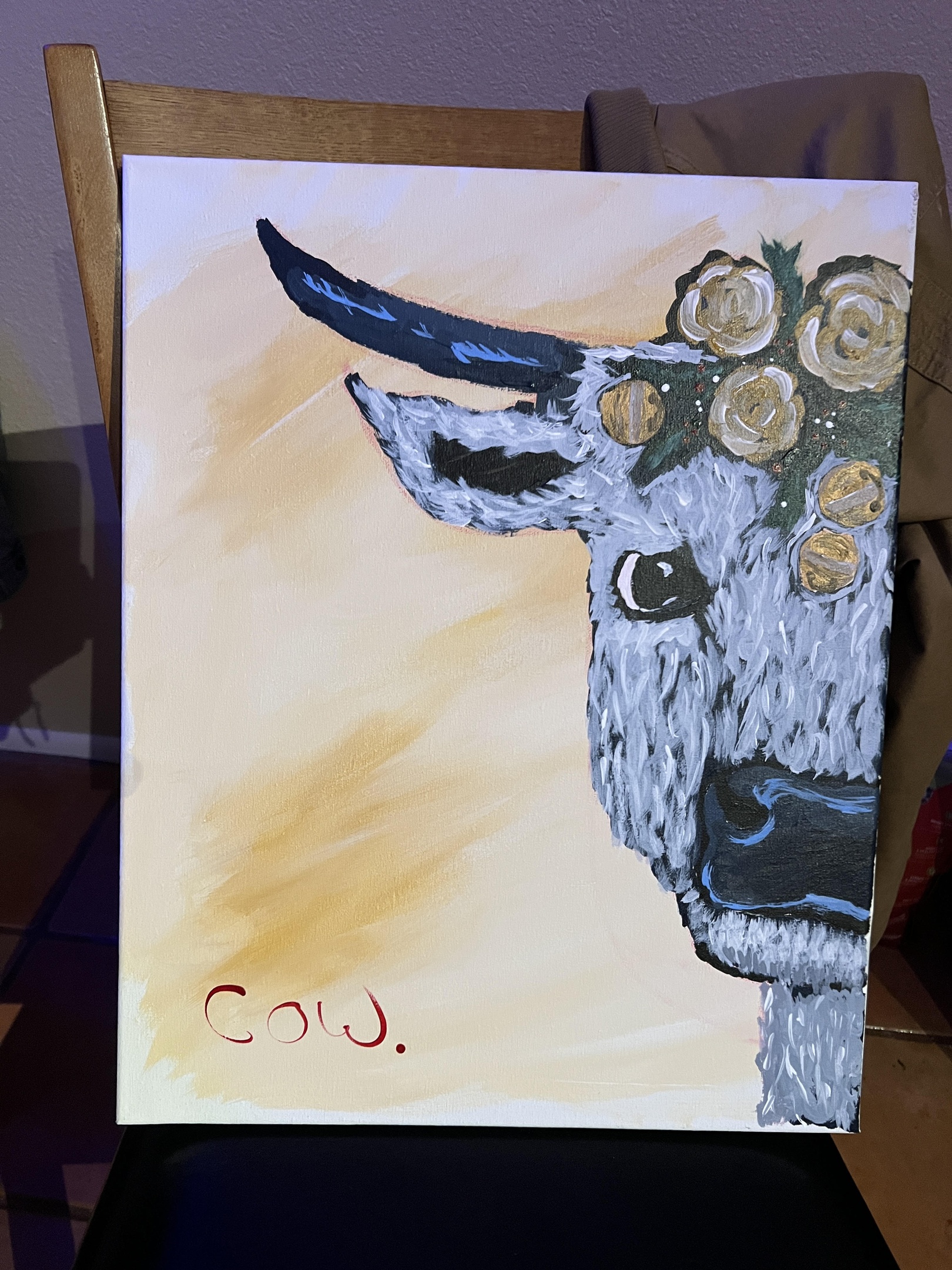 Until I get headshots taken, here is a painting I made of a cow.